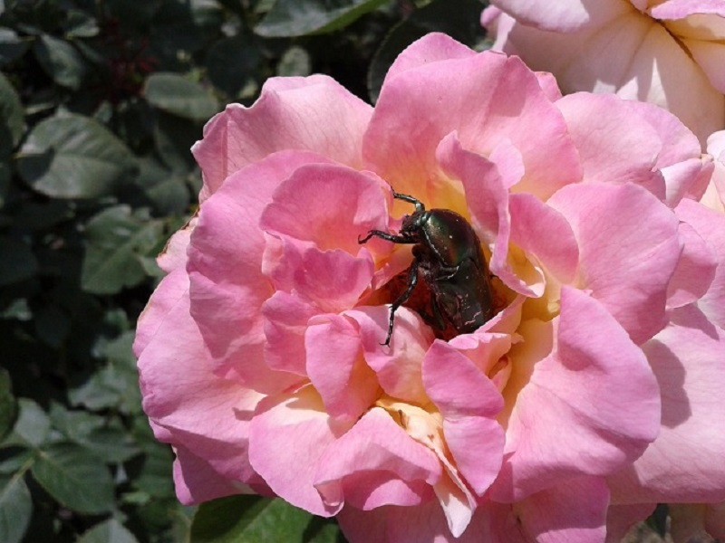 Disse billene på roser er delt inn i to kategorier: frukt og rosebiller. Roser er utsatt for begge skadedyrene. Rose skadedyr vises tidlig på våren. De spiser knopper som ikke en gang har tid til å blomstre. Effekten av fruktbiller vises først mot slutten av mai. De sluker unge stilker og blader.