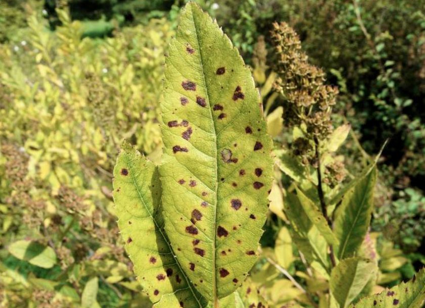 Når infisert med flekker, blir de berørte områdene fjernet, og busken behandles med preparater som inneholder kobber