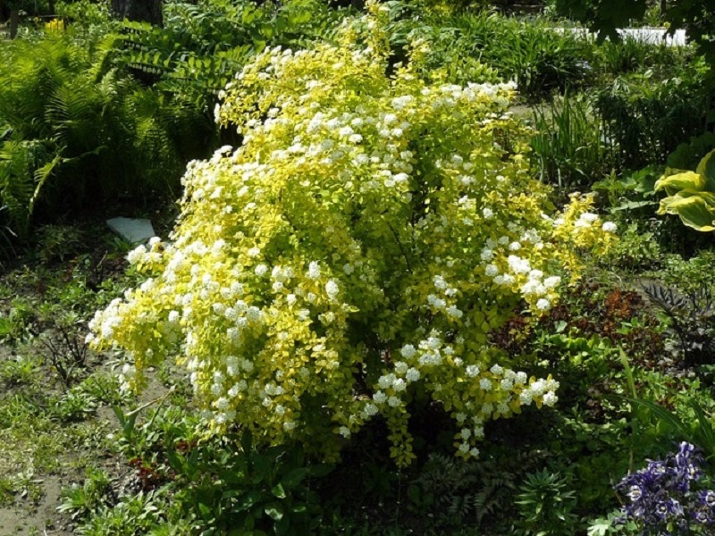 - Spirea Gold Fontaine. Busken har spredte grener dekket med gulgrønt løvverk. Med høstens begynnelse blir løvverket gul, og området blir fargerikt. I mai er gullbusken dekket med corymbose hvite blomsterstander, som gleder kjennere av skjønnheten i den japanske hagen. Sorten er upretensiøs for jord, frostbestandig. Fontene er ennå ikke kjent blant gartnere. Tilhører en sakte voksende plante.