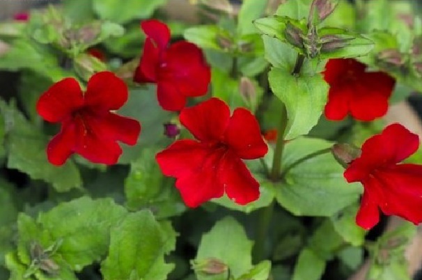 Mimulusblomster har forskjellige blomstringsperioder, avhengig av sort og sort. En ekstra forskjell er formen og fargen på knoppene selv.