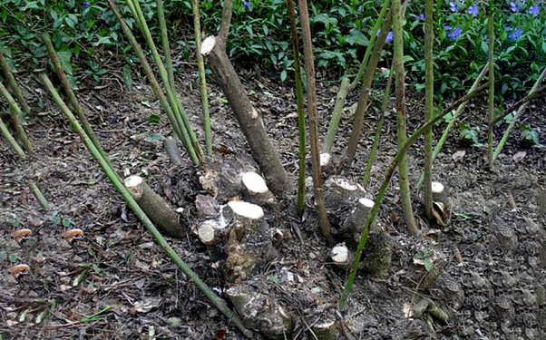 - Topp dressing. Det utføres bare i det andre året etter plantingen i åpen bakke. For planteernæring brukes organisk gjødsel (gjødsel) og mineralgjødsel (superfosfater, kaliumsulfat og urea) til frodig blomstring.