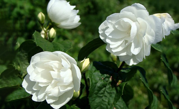 Terry jasminarter er veldig populære blant gartnere på grunn av deres dekorative egenskaper. Blant de 60 avlsvarianter er de vanligste: