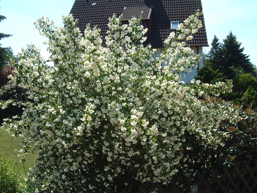 En av variantene av chubushnik er frottéjasmin, en populær dekorativ busk av den tempererte stripen.