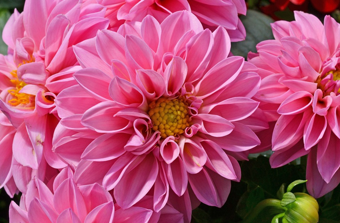 - фосфор. С неговата липса растежът спира, листата придобиват лилав оттенък и падат. Фосфорът има тенденция да се натрупва и започва да действа по време на цъфтежа. Поради наличието на фосфор, далиите цъфтят с ярки и буйни цветя, а корените стават устойчиви и здрави;