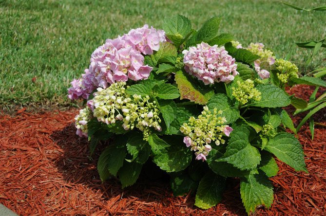 Você não pode superalimentar a flor. Ao transplantar hortênsias na primavera para outro local enriquecido, não é necessário mais fertilizante. As áreas das raízes são cobertas com palha de serragem mole, mas não permitem que o líquido fique estagnado em sua espessura.