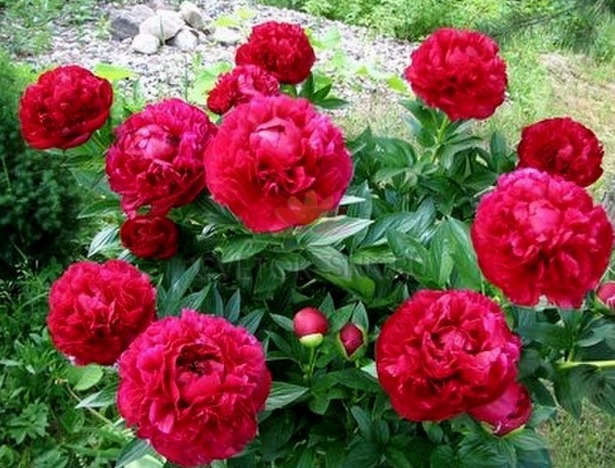 A floração das peônias começa no terceiro ano após o plantio no solo. As primeiras inflorescências são cortadas. Isso torna a planta mais forte. As peônias têm grandes flores duplas que aparecem no final de maio. A floração dura 15-20 dias.