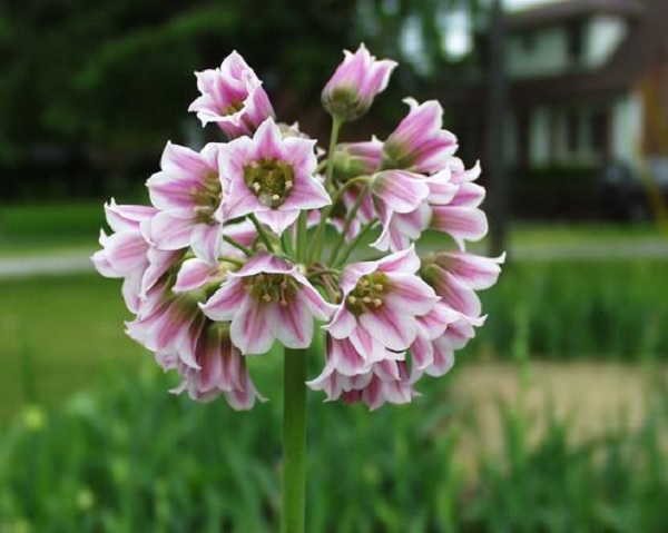 Този вид е един от най-красивите. Неговият храст може да достигне височина от 0,9 м. Декоративният български лук цъфти много красиво. Съцветията му приличат на големи топки, събрани от бяло-розови камбани.