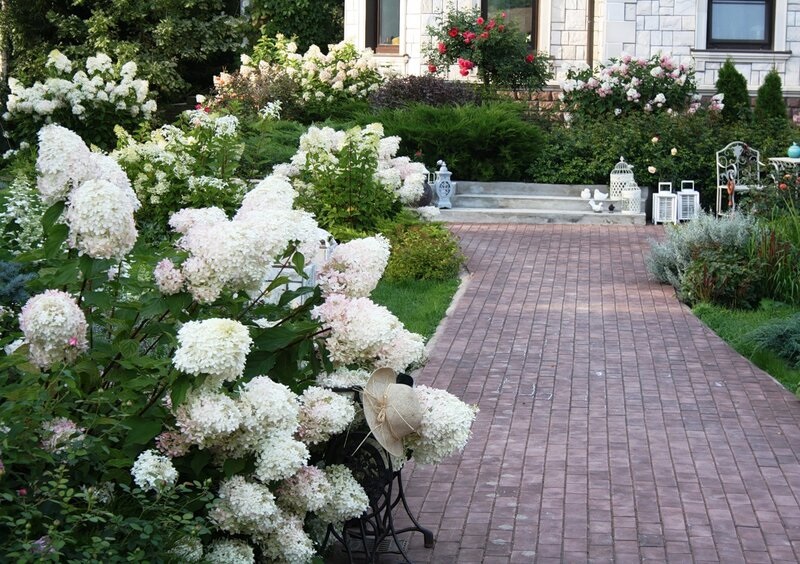 Едролистният вид (Hydrangea Paniculata) често се засажда с иглолистни дървета: туя, ела или хвойна. За да украсите градината, можете да поставите хортензия Grandiflora Paniculata до плодови и ягодоплодни храсти.