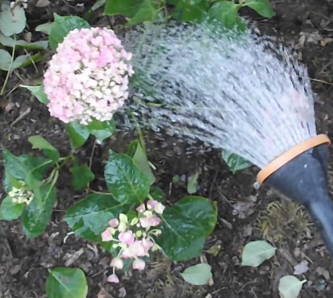 Когато по листата се появят кафяви петна, това означава, че хортензията трябва да бъде защитена от пряка слънчева светлина.