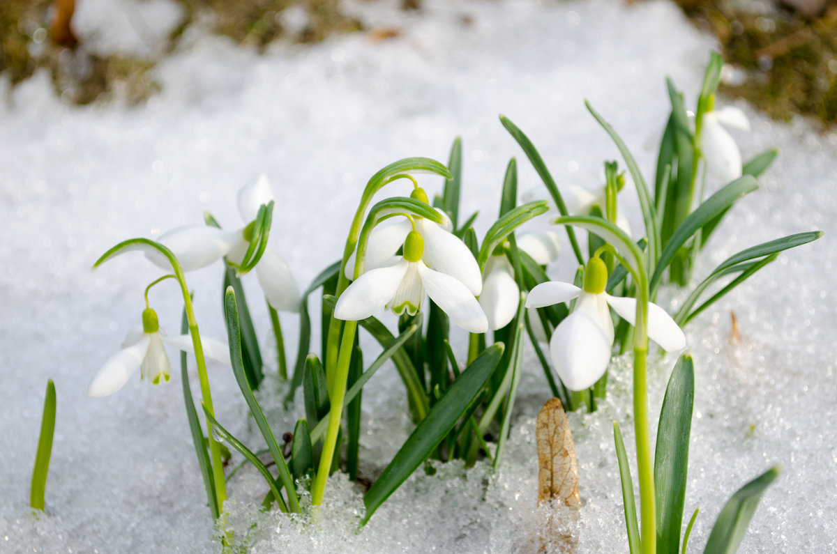 Белите кокичета цъфтят по време на затопляне, но преди стабилно сухо време.