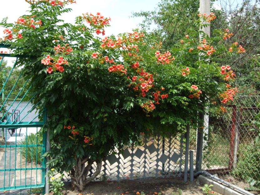 Campsis liana е красиво, бързо растящо растение, което се използва от 17-ти век за украса на външните стени на къщи, беседки и градини. Разклонените издънки по време на цъфтежа са покрити с ярки цветя с големи размери. Растението е популярно като "tekoma".