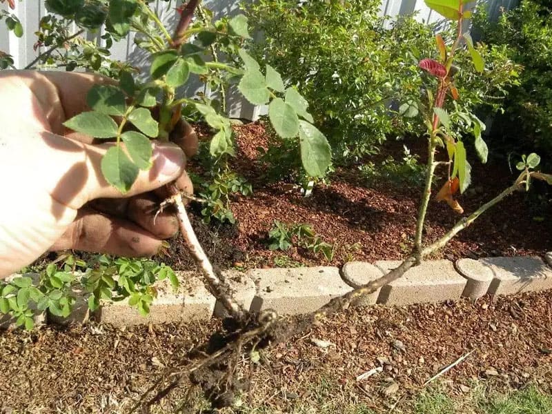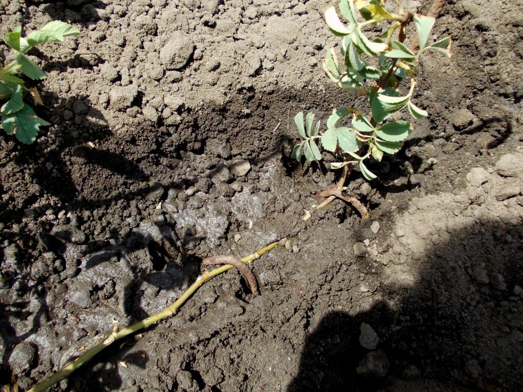 - Akşamları gülün köklerini kazıyorlar. Çalı güçlü bir şekilde büyüdüyse, her taraftan kazılır ve kökler boyunca bir kürek kaydırarak yerden çekilir.